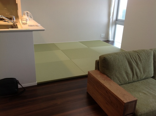 リビングの一部に和紙表(銀白色)で琉球畳を納めさせて頂きました。